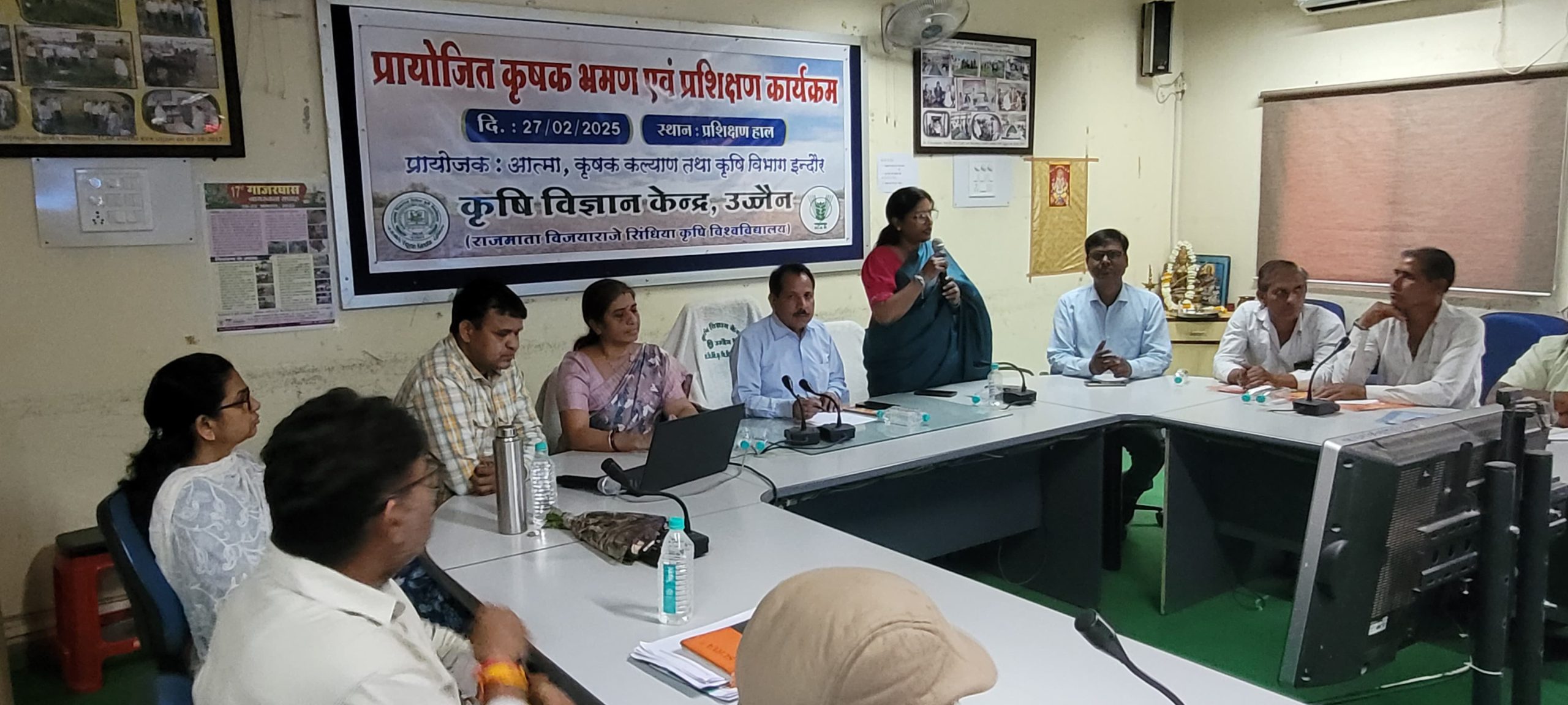 उज्जैन,28 फरवरी। केन्द्र द्वारा आत्मा परियोजना के माध्यम से तकनीकी प्रशिक्षण एवं कृषक भ्रमण कार्यक्रम डॉ. ए.के.दीक्षित, प्रधान वैज्ञानिक एवं प्रमुख के मार्गदर्षन में एक दिवसीय कृषक प्रषिक्षण का आयोजन 27 को किया गया। कार्यक्रम का शुभारंभ मॉ सरस्वती पूजन एवं दीप प्रज्वलित कर किया गया। संस्था प्रमुख डॉ. ए.के.दीक्षित द्वारा स्वागत भाषण प्रस्तुत किया गया, जिसमें कृषि तकनीकी पहलु पर चर्चा की गई । श्री अमर दीक्षित बी.टीम आत्मा इंदौर द्वारा कार्यक्रम की रूपरेखा के बारे में बताया गया। डॉ. सविता कुमारी कार्यक्रम की नोडल अधिकारी द्वारा कार्यक्रम का सफल संचालन किया गया एवं मृदा स्वास्थ्य एवं प्राकृतिक खेती का महत्व विषय पर तकनीकी जानकारी किसानों को प्रदान की गई।