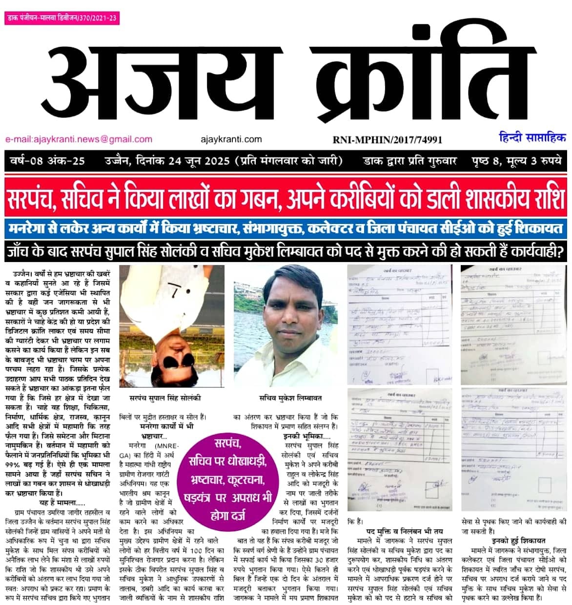 सरपंच, सचिव ने किया लाखों का गबन, अपने करीबियों को डाली शासकीय राशि