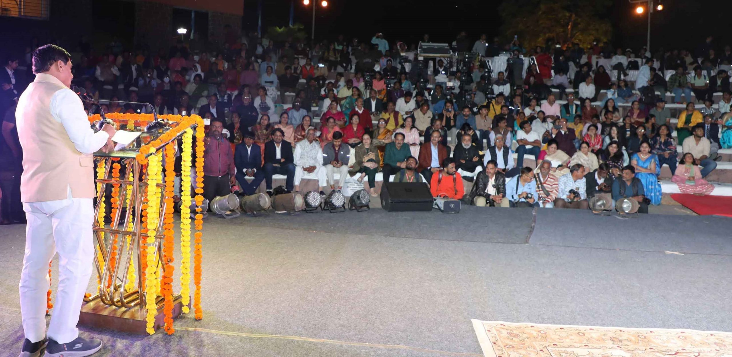 मुख्यमंत्री डॉ. मोहन यादव ने कहा है कि कलाएं स्वयं बोलती हैं। यह हमारे व्यवहार और भावनाओं से भी व्यक्त होती है। मध्यप्रदेश कला की धरती है। यहाँ से कई विश्व मान्य कला मनीषी हुए हैं। कलाओं और कलासाधकों से ही हमारी संस्कृति पोषित है, पल्लवित है। मध्यप्रदेश को विश्व में कला गौरव स्थल की पहचान दिलाने में भारत भवन की प्रमुख भूमिका है। हम सब भारत भवन के एक गौरवशाली अतीत के गवाह हैं। आज भारत भवन की 43वीं वर्षगांठ मनाते हुए हम बेहद गौरवान्वित हैं। मुख्यमंत्री डॉ. मोहन यादव गुरूवार को भारत भवन के मुक्ताकाश मंच से राज्य शिखर सम्मान समारोह को संबोधित कर रहे थे। मुख्यमंत्री डॉ. यादव ने मध्यप्रदेश की सांस्कृतिक धरोहर को एक नई पहचान देते हुए वर्ष 2022 एवं 2023 के राज्य शिखर सम्मान प्रदान किए। इस अवसर पर 15 कला मनीषियों को उनके अतिविशिष्ट योगदान के लिए शॉल, श्रीफल, सम्मान पट्टिका एवं दो लाख रूपए की सम्मान राशि देकर अलंकृत किया गया। समारोह में संगीत, नृत्य, नाटक, जनजातीय एवं लोक कला, साहित्य तथा रंगकर्म के क्षेत्र में योगदान देने वाले कलाकारों, साहित्यकारों एवं रंगकर्मियों को शिखर सम्मान से सम्मानित किया गया।
